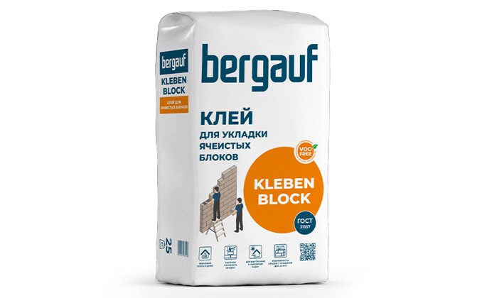 Клей для укладки ячеистых блоков Bergauf KLEBEN BLOCK зима, 25 кг